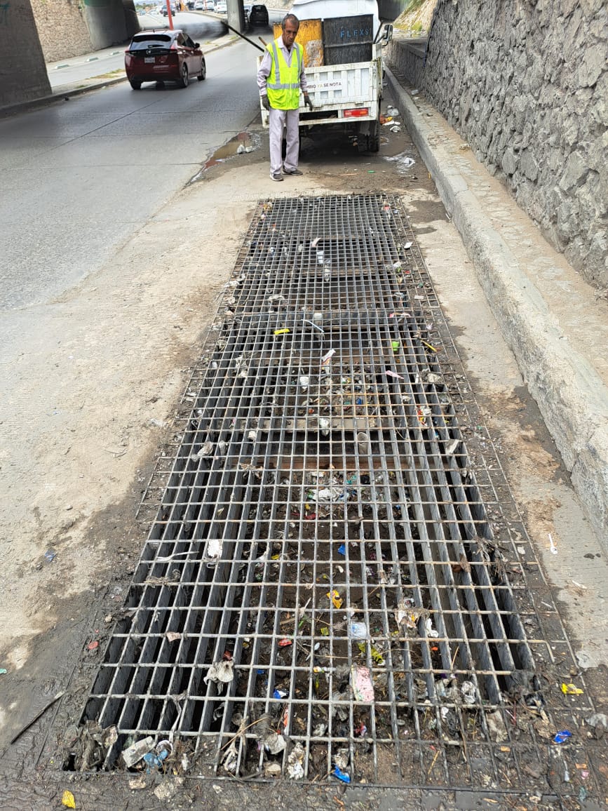 “Cada vez que termina una tormenta hacemos un recorrido en los puntos críticos de la ciudad y efectivamente, en el paso a desnivel de la Insurgentes nos encontramos con un gran acumulamiento de basura que impedía que el agua fluyera de manera apropiada hacia la alcantarilla, esto, a pesar de que hace dos días la cuadrillas estuvieron trabajando en el barrido de la avenida”, señaló.