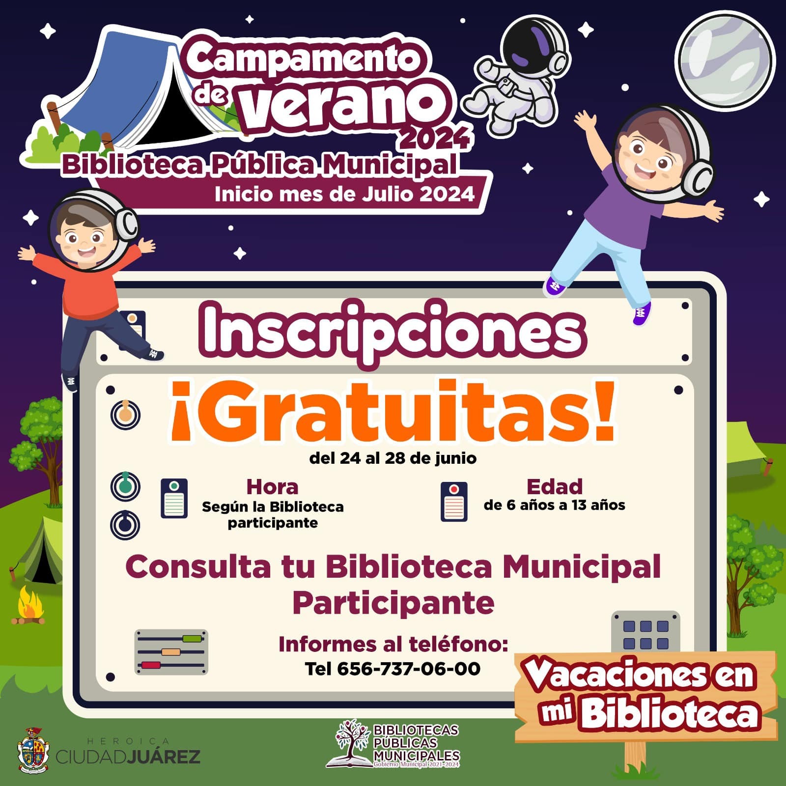 Entre los espacios que estarán participando se encuentra la Biblioteca Municipal Arturo Tolentino, ubicada en la calle Ignacio Ramírez 351, a un costado del Parque Borunda. El lugar tendrá su campamento del 1 al 12 de julio en horario de 9:00 de la mañana a 1:00 de la tarde.