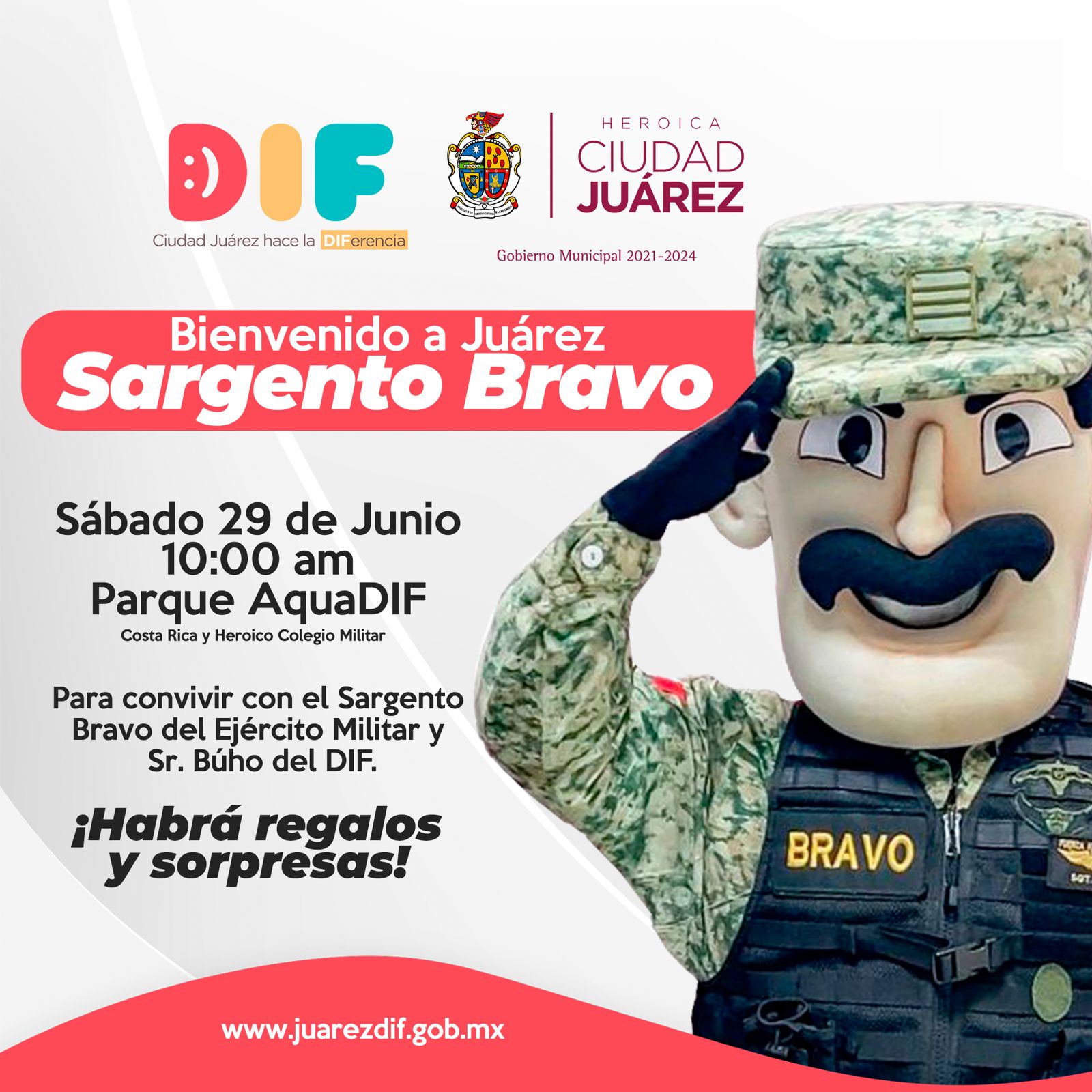 El Sistema para el Desarrollo Integral de la Familia del Municipio de Juárez (DIF) invita a las niñas, niños y a sus familias al evento ‘Bienvenido a Juárez Sargento Bravo’, que se llevará a cabo en el AquaDIF.