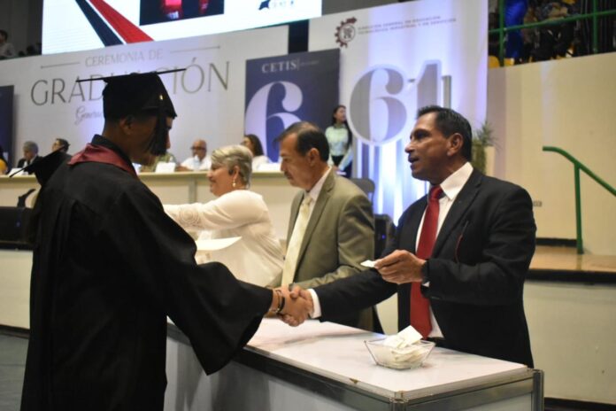 En representación del Presidente Municipal, Cruz Pérez Cuéllar, el director general de Servicios Públicos, Arturo Rivera Barreno, acudió a la ceremonia de graduación de 561 alumnos del Centro de Estudios Tecnológicos Industrial y de Servicios (CETIS) 61, que tuvo como sede el Gimnasio de Bachilleres, ubicado al interior del Parque Central.