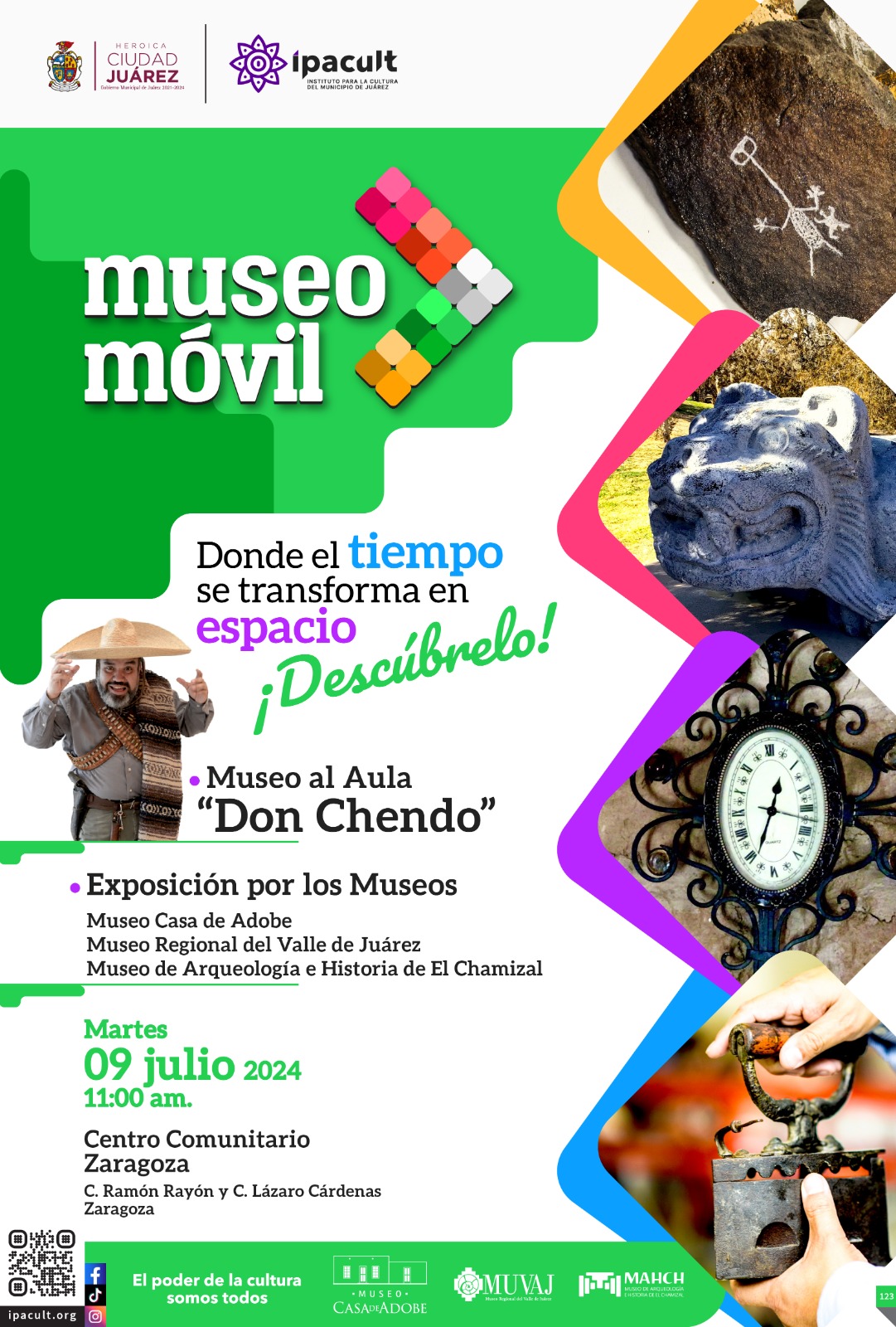 El Instituto para la Cultura del Municipio de Juárez, que dirige Myrna Judith Barajas Martínez, invita a la ciudadanía a disfrutar de la exhibición que presentarán el Museo de Arqueología e Historia de El Chamizal (MAHCH), el Museo Regional del Valle de Juárez (MUVAJ), la Sala de Arte Germán Valdés “Tin Tan” y el Museo Casa de Adobe, mañana martes 9 de julio en el Centro Comunitario Zaragoza.