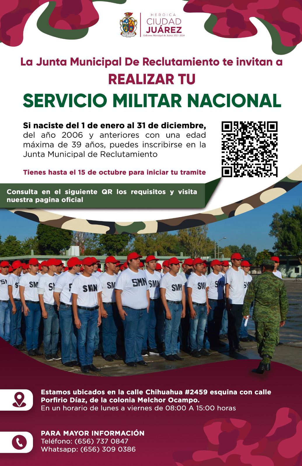 La Junta Municipal de Reclutamiento invita a los juarenses que nacieron en el año 2006, anticipados y remisos con una edad máxima de 39 años, para que se inscriban y cumplan con el Servicio Militar Nacional.