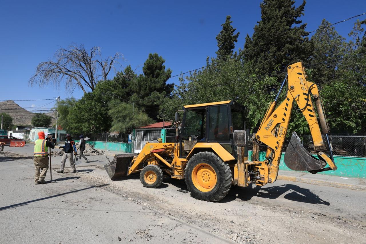 Como parte del programa de mejoramiento de vialidades, personal de la Dirección General de Obras Públicas permanece trabajando en el bacheo de calles y avenidas principales de la ciudad, entre ellas la calle José María Arteaga.