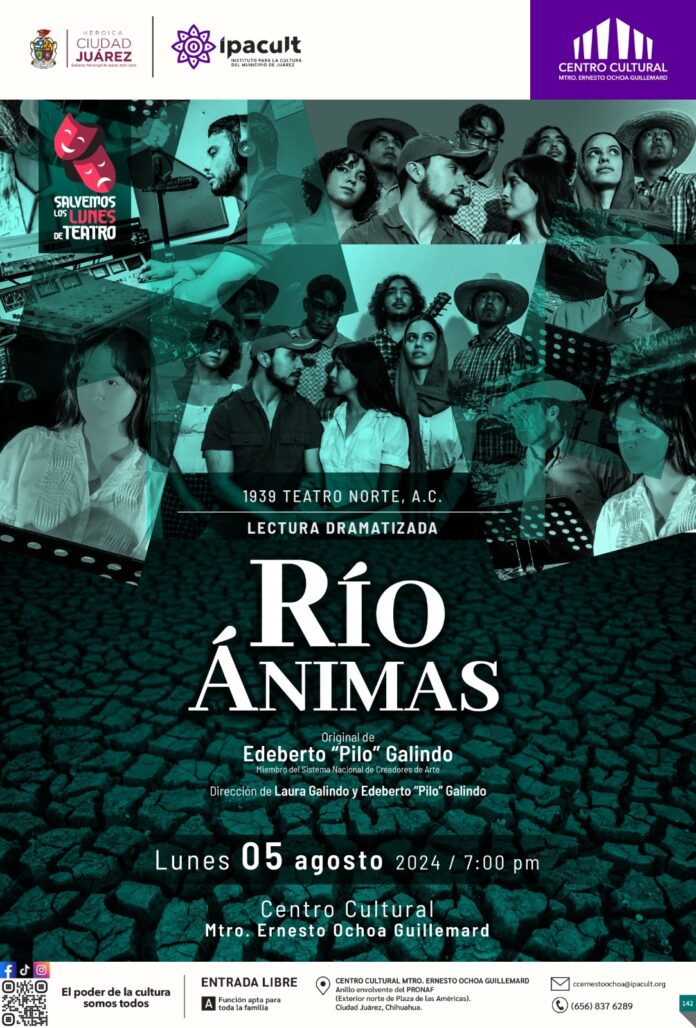 El Instituto para la Cultura del Municipio de Juárez (IPACULT) extiende una cordial invitación a la ciudadanía para asistir a la lectura dramatizada de “Río Ánimas”, dirigida por el reconocido dramaturgo Edeberto “Pilo” Galindo y Laura Galindo.
