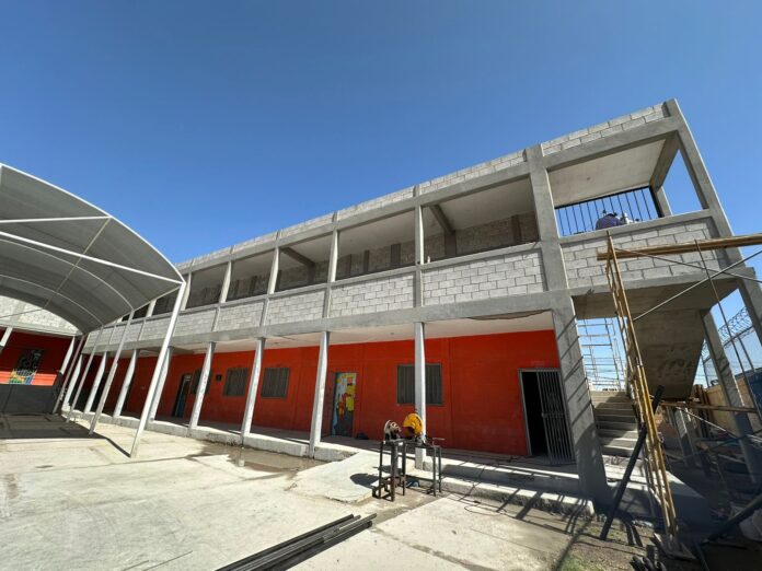 La Dirección General de Obras Públicas sigue trabajando en la construcción de aulas en el Centro Juvenil Díaz Ordaz, ubicado en la calle Francisco Pimentel, de la colonia Gustavo Díaz Ordaz, una obra ganadora en el programa del Presupuesto Participativo 2023.