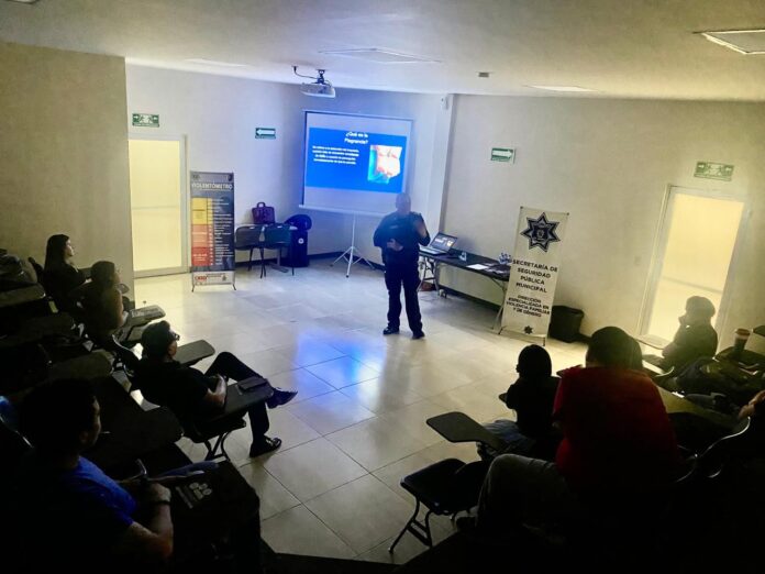 Agentes de la Dirección Especializada en Violencia Familiar y de Género, de la Secretaría de Seguridad Pública Municipal, impartieron pláticas preventivas a los alumnos de la Universidad Vizcaya de las Américas.