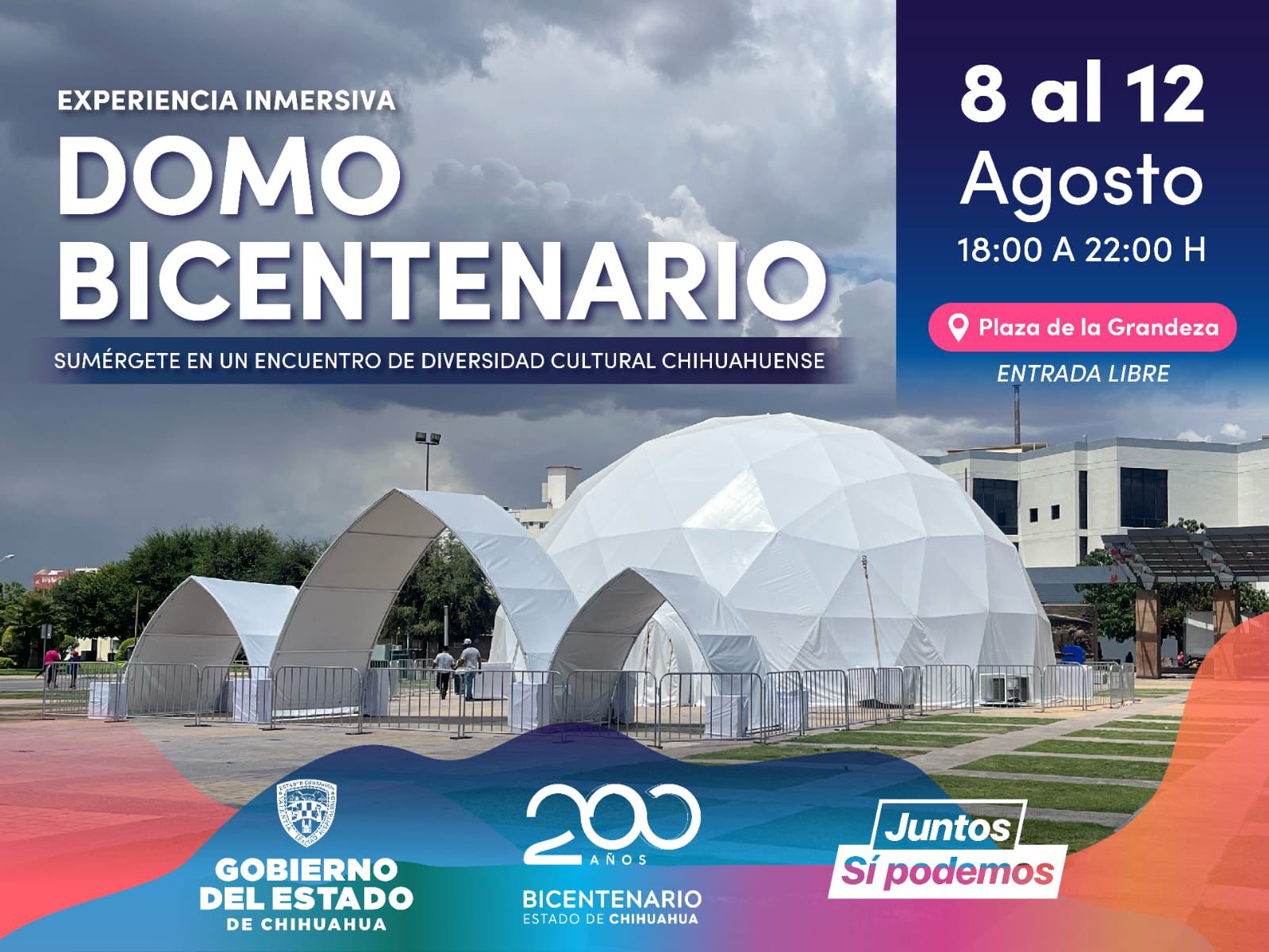 En el marco de la conmemoración por el Bicentenario de Chihuahua como Estado libre y soberano, la Secretaría de Cultura invita a la comunidad a conocer las 8 Regiones Culturales de la entidad, que serán exhibidas en el Domo Inmersivo instalado en la Plaza de la Grandeza.