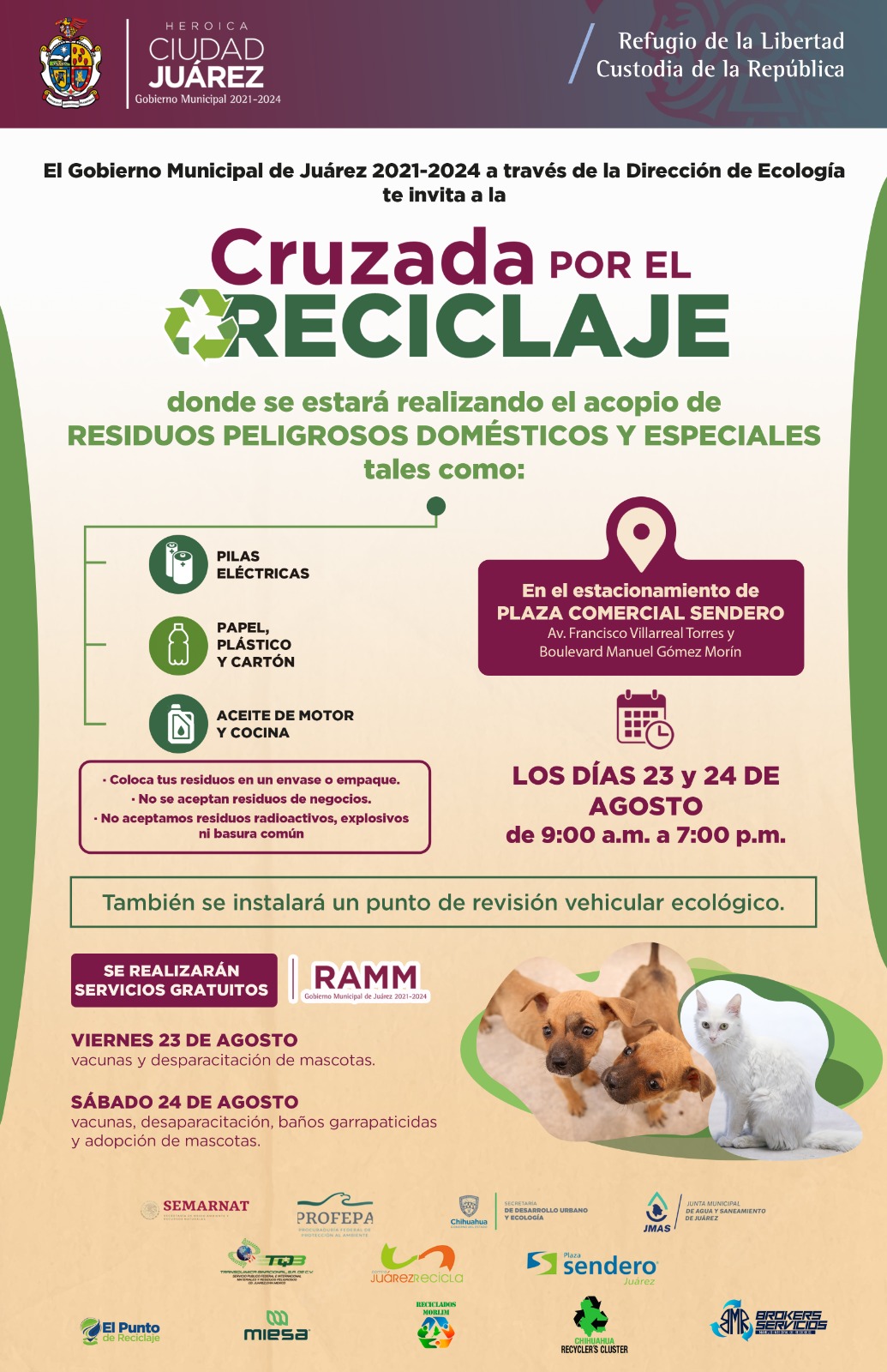 El Gobierno Municipal, a través de la Dirección de Ecología, invita a la ciudadanía a participar en la Cruzada por el Reciclaje, que tiene como objetivo el acopio de residuos peligrosos domésticos y especiales.