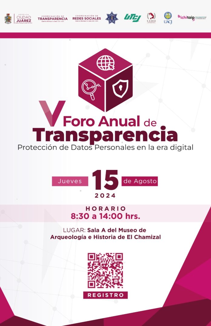 La Coordinación de Transparencia invita a la población a su V Foro Anual de Transparencia “Protección de Datos Personales en la era digital”.
