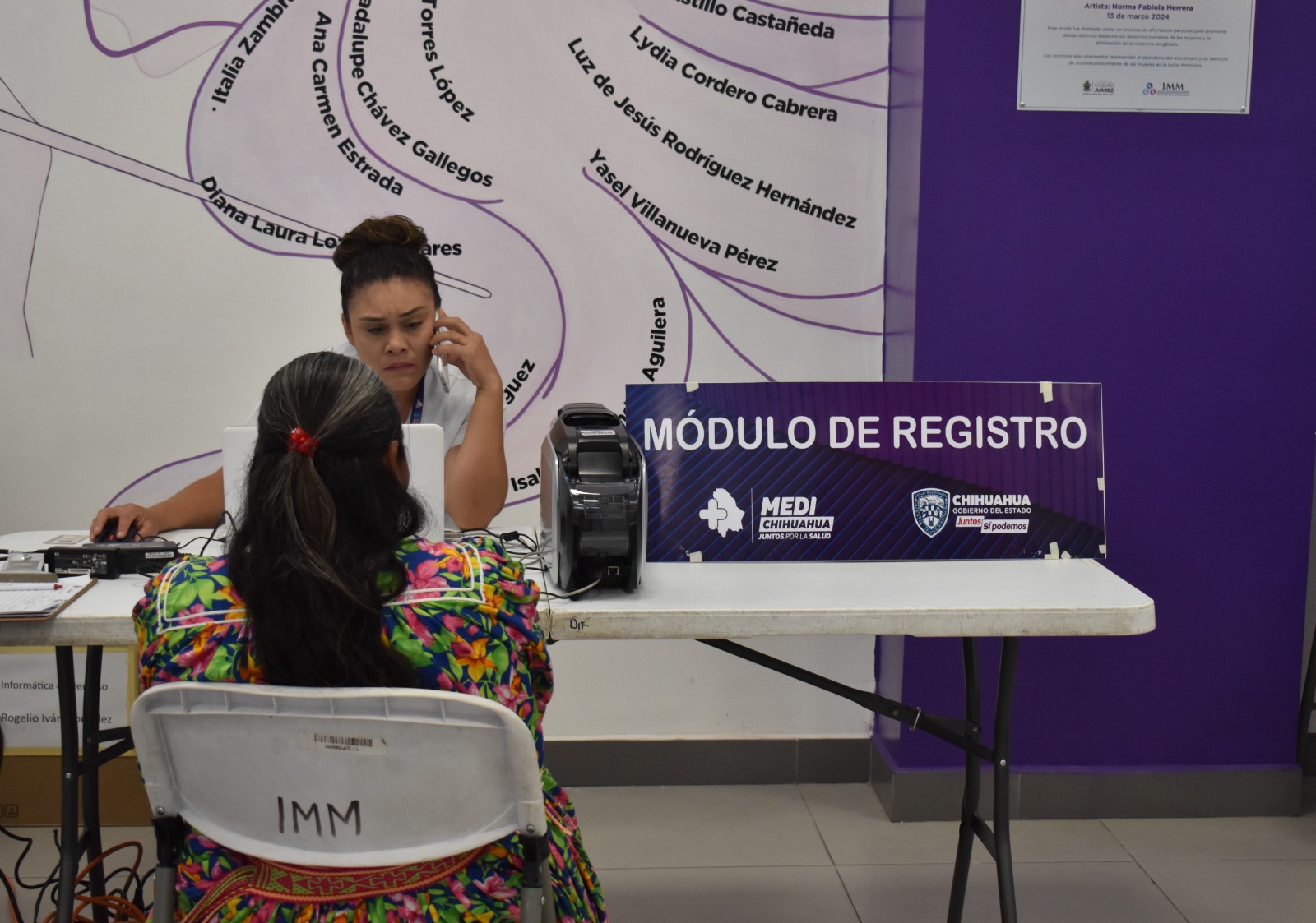 En este sentido, con la finalidad de fortalecer la cooperación interinstitucional para la promoción de los derechos humanos de las mujeres indígenas y el acceso a servicios gratuitos de salud, el área de Atención a la Mujer Indígena del IMM acompañó el proceso de afiliación de personas de las comunidades a MediChihuahua, brindando servicios de traducción a las comunidades ralámuli y chinanteca.