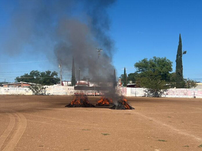 Con el apoyo de los elementos del 35 Batallón de Infantería y Protección Civil se incineraron más de 200 chalecos tácticos.