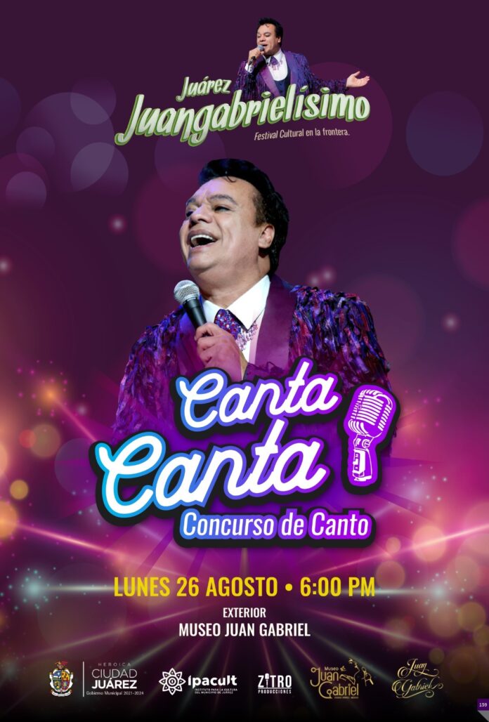 El Gobierno Municipal, a través del Instituto para la Cultura del Municipio de Juárez (IPACULT), en colaboración con la Casa Juan Gabriel, el Museo Juan Gabriel y ZITRO producciones, extiende una invitación a la ciudadanía para asistir al concurso “Canta Canta”, que forma parte de las actividades de la semana cultural “Juárez, Juangabrielísimo 2024”.
