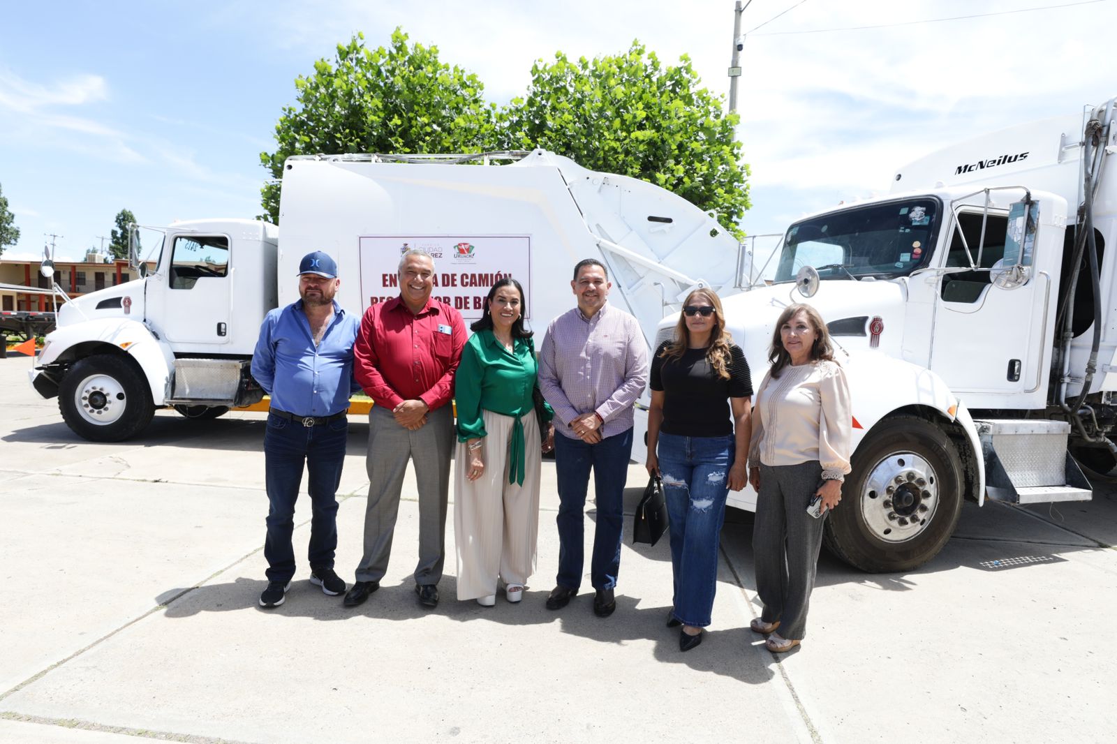 La entrega se llevó a cabo en Cuauhtémoc, donde Pérez Cuéllar dijo estar muy contento de dar cumplimiento al Cabildo al hacer la entrega oficial de los camiones recolectores.