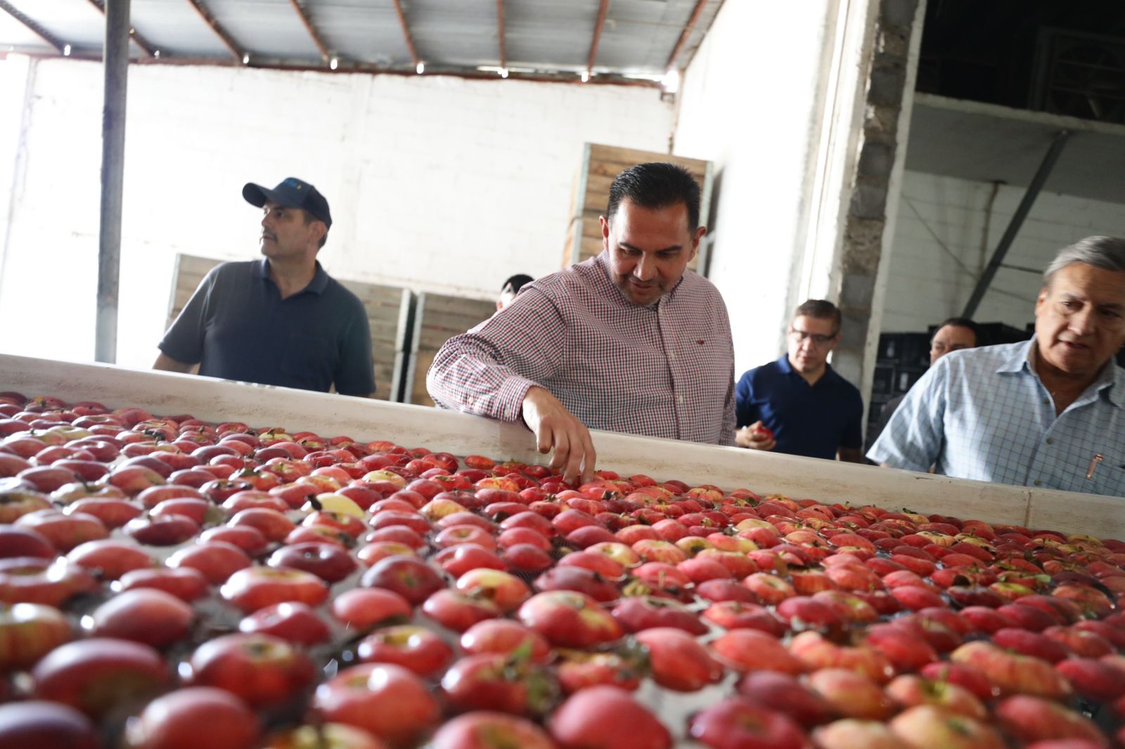 Acompañado por el gerente de la empresa, Jesús Campos Sandoval y el accionista, Luis Manuel Hernández, el alcalde conoció el proceso que se lleva a cabo para conservar las manzanas.