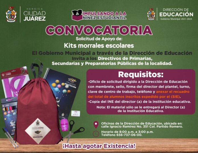 El Gobierno Municipal, por medio de la Dirección de Educación invita a directores de escuelas primarias, secundarias y preparatorias públicas a participar en la convocatoria de “Kits Morrales Escolares con Útiles Escolares”.