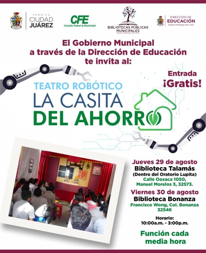 La Dirección de Educación Municipal invita a la población en general a disfrutar de una obra de teatro que se realizará con robots.