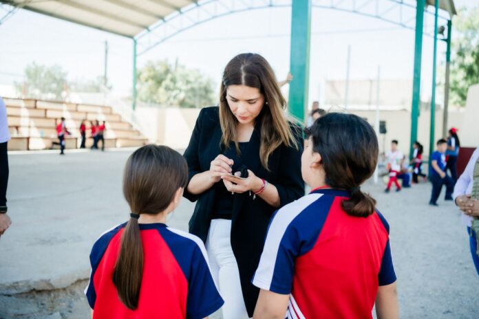 Rubí Enríquez, presidenta del Sistema para el Desarrollo Integral de la Familia del Municipio de Juárez (DIF), visitó esta institución educativa para saludar a los estudiantes y reconocer el arduo trabajo que se realiza en esta estrategia del Gobierno Municipal.