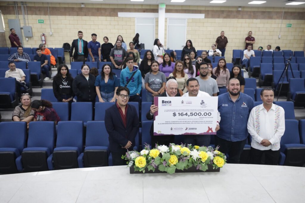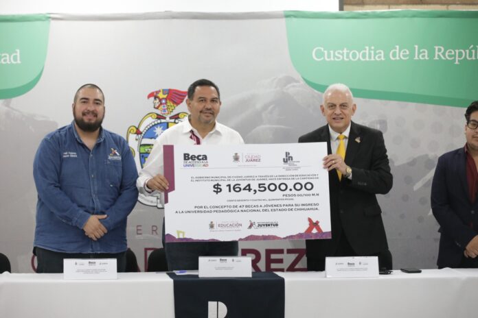 Este día el Presidente Municipal, Cruz Pérez Cuéllar, entregó 47 constancias de becas para nuevo ingreso a la Universidad Pedagógica Nacional del Estado de Chihuahua, Unidad Juárez, como parte del programa de acceso a la universidad del Instituto Municipal de la Juventud de Juárez.