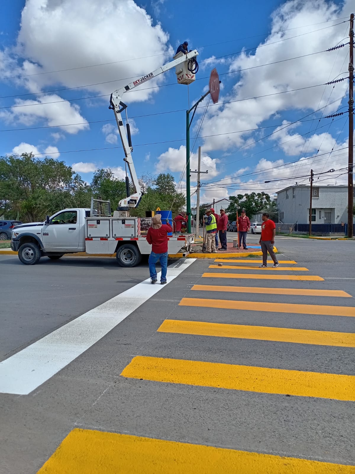 Estos trabajos, que tienen la finalidad de dar una mayor certeza vial a quienes transitan por ese sector, fueron realizados por una cuadrilla de colaboradores de esta dependencia municipal, quienes además pintaron en los pasos peatonales, líneas de frenado y cordones de banqueta en el cruce.