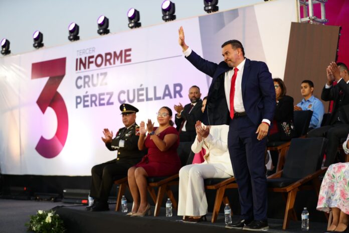 El Alcalde Cruz Pérez Cuéllar, presentó ante los juarenses su Tercer Informe de Gobierno, en la Plaza de la Mexicanidad, en donde resaltó los avances en materia deportiva.