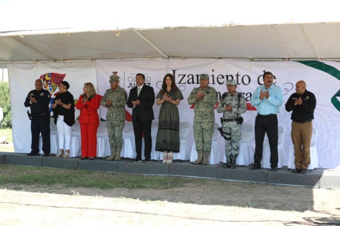 En el marco de la ceremonia de izamiento de la bandera Nacional, el Presidente Municipal, Cruz Pérez Cuéllar, refrendó su compromiso de trabajar por Juárez y su comunidad, ya que este es la mejor manera de demostrar el amor a la patria.