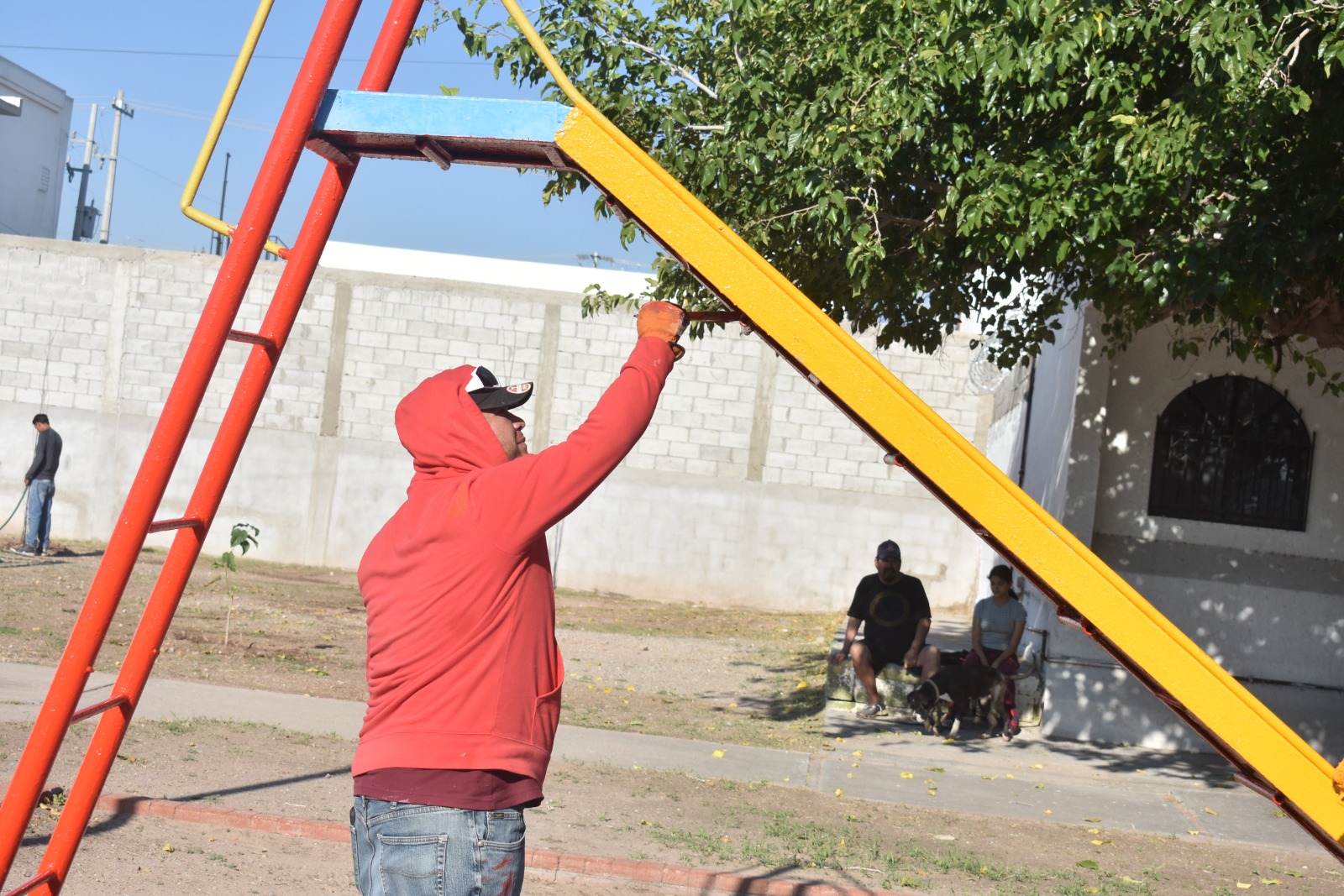 El titular de la dependencia, Daniel Iván Zamarrón Saldaña, dio a conocer que a petición de los vecinos del sector se rehabilitaron y pintaron los juegos; también se realizó poda formativa de los árboles y se retiraron los residuos y la basura.