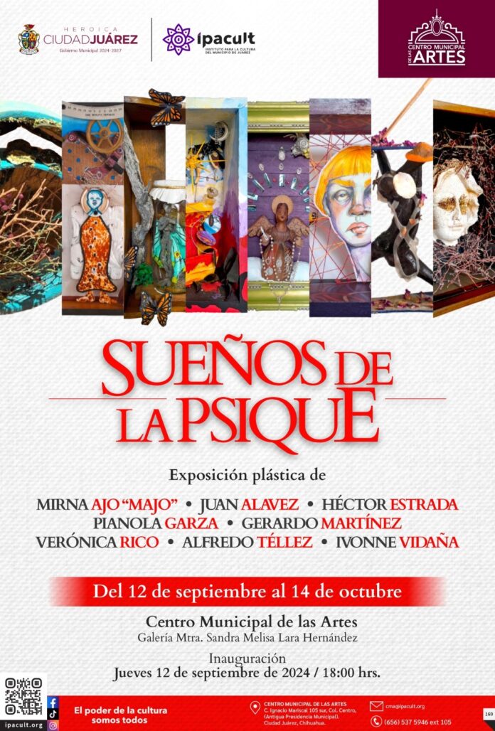 El Instituto para la Cultura del Municipio de Juárez (IPACULT) invita a la ciudadanía a la inauguración de la exposición pictórica “Sueños de la Psique”, encabezada por el artista Juan Carlos Alavez, que será exhibida en la galería “Melisa Lara Hernández” del Centro Municipal de las Artes (CMA).