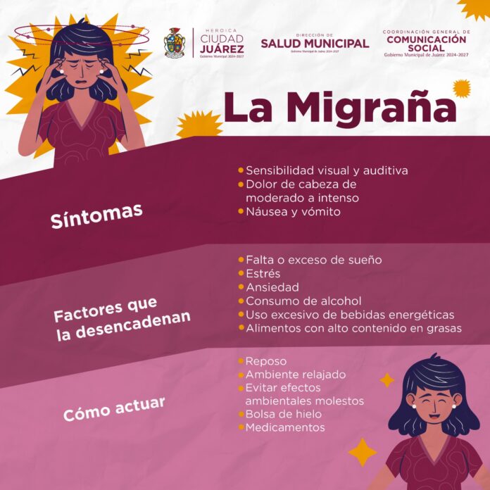 Explicó que la migraña se caracteriza por episodios recurrentes de dolor de cabeza intenso, a menudo acompañado de náuseas, vómitos y sensibilidad extrema a la luz y al sonido, a diferencia de los dolores de cabeza comunes, la migraña suele durar de 4 a 72 horas y puede interferir significativamente con las actividades diarias.