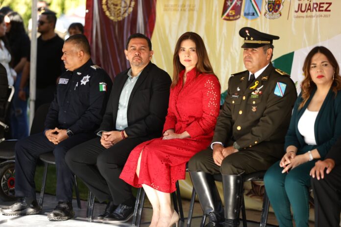 La ceremonia, efectuada en el monumento a los Niños Héroes, estuvo encabezada por el Presidente Municipal, Cruz Pérez Cuéllar y el General Brigadier de Estado Mayor, César Gutiérrez López, comandante de la Guarnición Militar de Juárez.