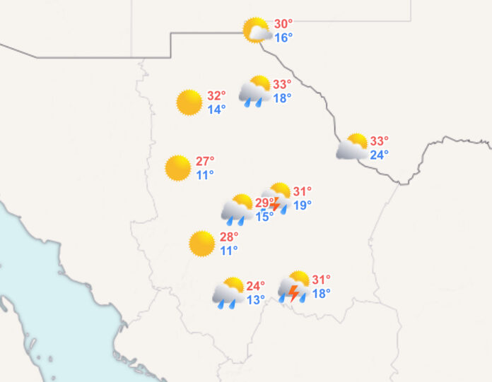 Por la mañana, ambiente fresco en la región y frío en zonas serranas de Chihuahua y Durango. Durante la tarde, ambiente cálido.