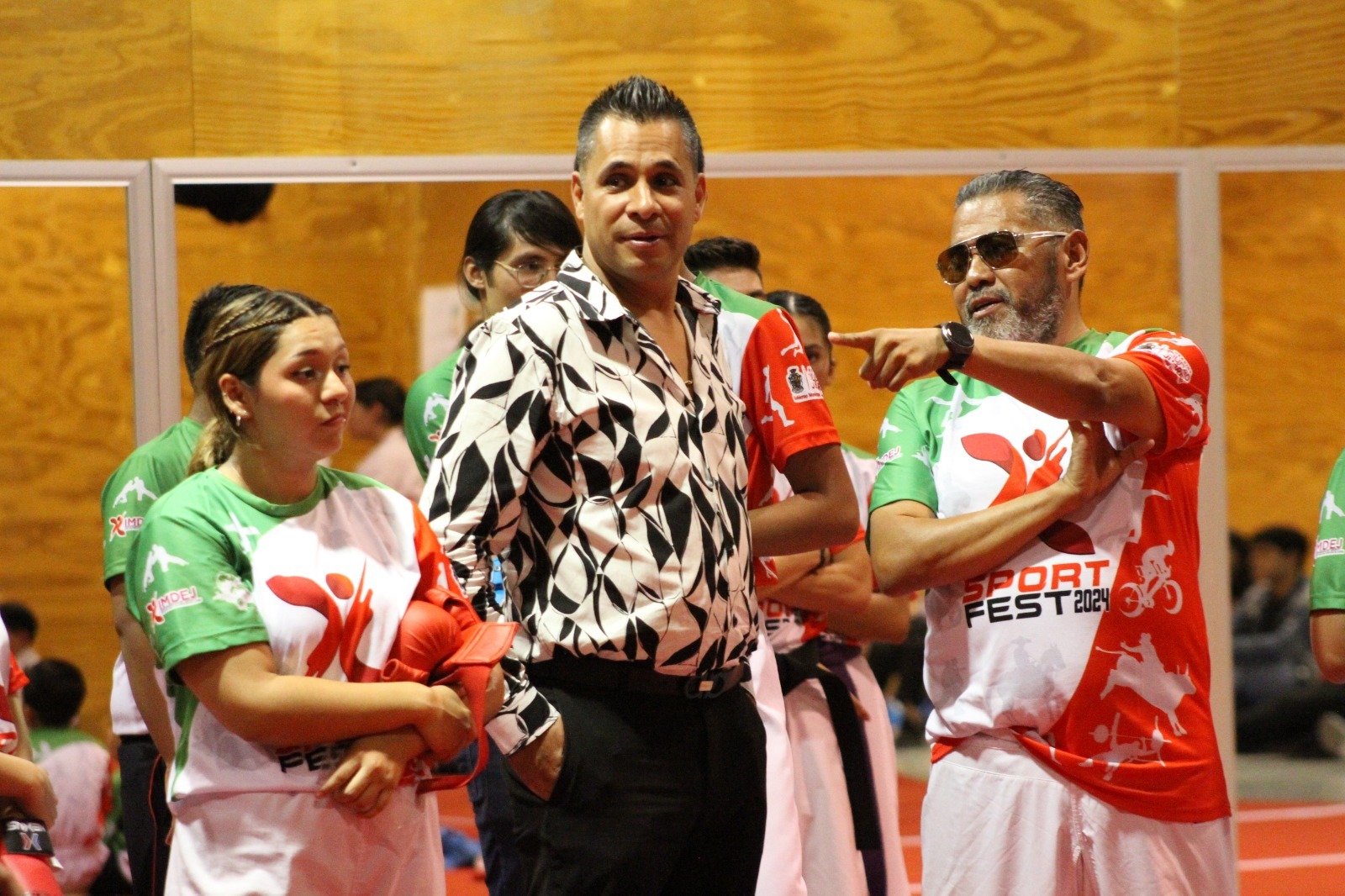 Durante la exhibición, el encargado del despacho del Instituto Municipal del Deporte y Cultura Física, Juan Carlos Escalante, agradeció a nombre del Presidente Municipal, Cruz Pérez Cuéllar; al titular de la liga de Karate Do y a los padres de familia por ayudar a fomentar este deporte en el Sport Fest 2024.