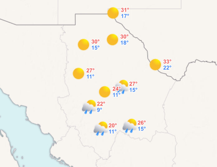 En Chihuahua capital se prevé una temperatura máxima de 27 grados centígrados y una mínima de 15.
