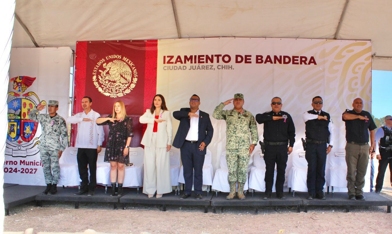Coordinada por la Dirección de Educación Municipal y autoridades militares, se llevó a cabo este día la ceremonia de izamiento de la bandera nacional correspondiente al mes de octubre, evento que tuvo como sede la megabandera, en la zona de El Chamizal.