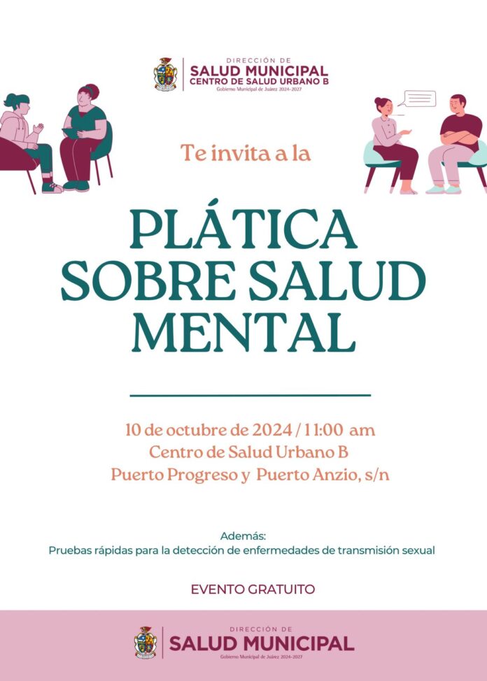 El próximo jueves 10 se llevará a cabo una charla gratuita sobre el cuidado de la salud mental en el Centro Urbano B, como parte de la conmemoración del Día Mundial de la Salud Mental.