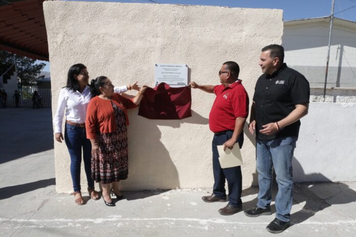 En la entrega de rehabilitación se contó con la presencia del coordinador de Infraestructura del Municipio, Ismael Rueda Fernández; el director de Educación, Guillermo Enrique Alvidrez Olivas y los regidores Karla Escalante y Jorge Marcial Bueno.