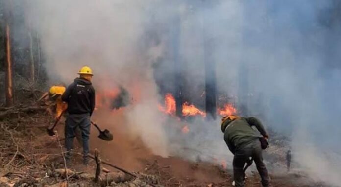 Ahora reporta la Conafor que 22 personas trabajan en la extinción de las llamas y llevan un 50% de control de las mismas, así como un 40% de liquidación.