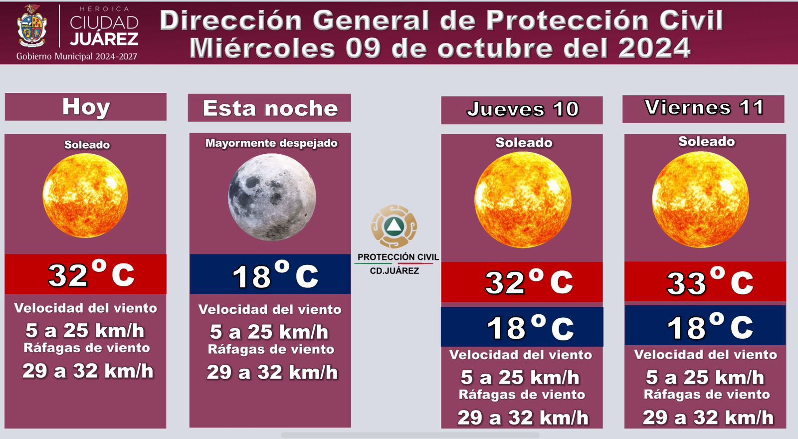 La Dirección General de Protección Civil de Ciudad Juárez dio a conocer el pronóstico del clima para los próximos días.