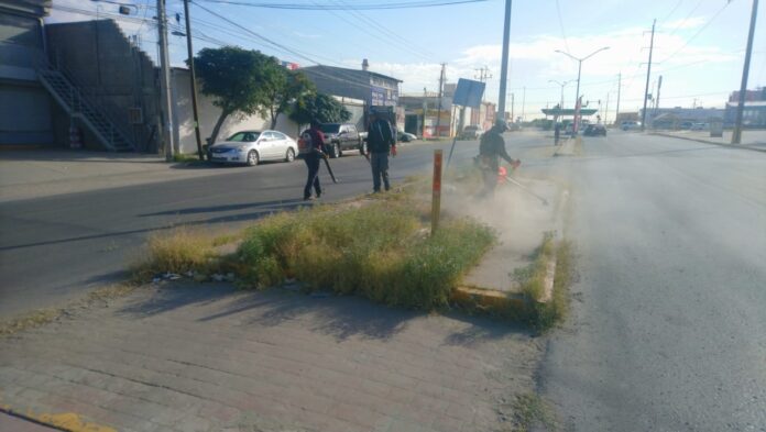 Personal de la Dirección de Parques y Jardines dio mantenimiento al camellón central de la avenida Cesáreo Santos, en el tramo que comprende del bulevar Óscar Flores a la carretera Panamericana.