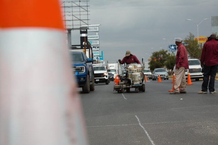 El área de Control de Tráfico adscrita a la Coordinación General de Seguridad Vial pintó la división de carriles para la circulación vehicular sobre la avenida Tecnológico, en el tramo que va de la calle La Labranza hasta la avenida Ejército Nacional.