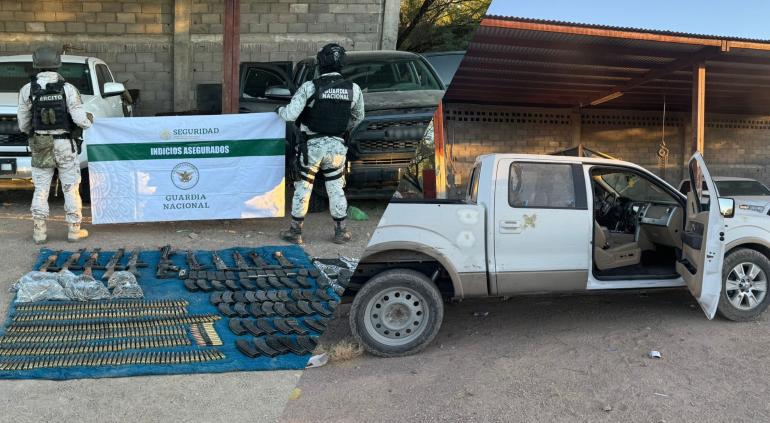En el estado de Sonora, la Guardia Nacional (GN), en coordinación con el Ejército Mexicano, aseguraron 5 camionetas, dentro de las cuales localizaron 11 fusiles de asalto, 81 cargadores y 2,280 cartuchos útiles.