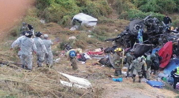 Un autobús de pasajeros de la línea Ómnibus de México chocó con un tractocamión con doble remolque, resultando en la muerte de 24 personas y dejando a 5 más gravemente heridas.