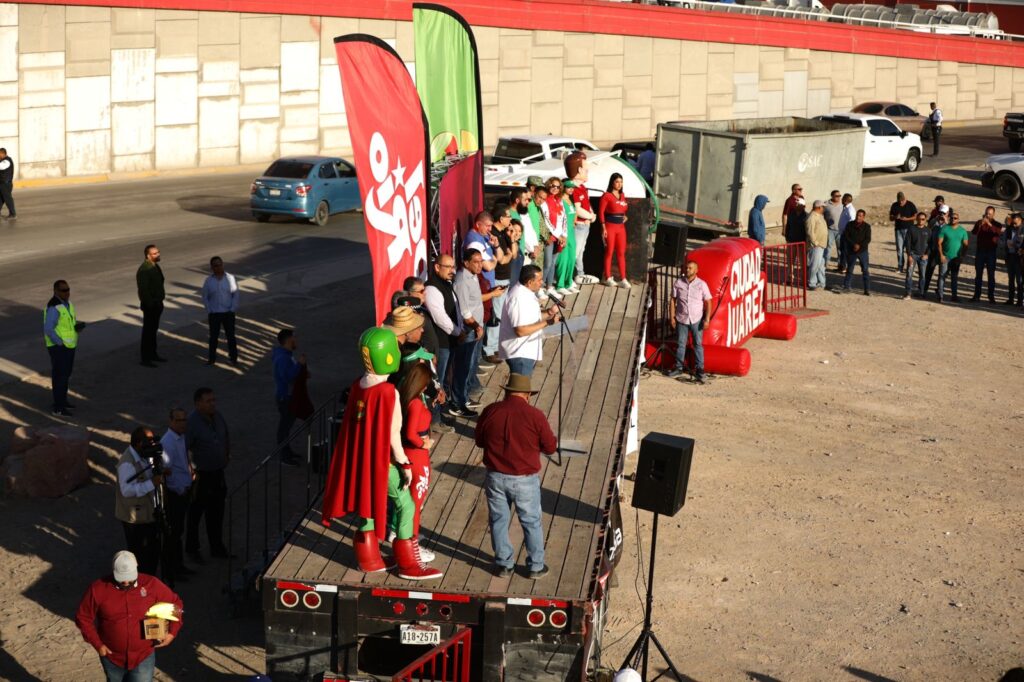 Con la participación de instituciones educativas, empresas maquiladoras, yonkeros, asociaciones de recicladores y ciudadanía en general, el Presidente Municipal, Cruz Pérez Cuéllar, dio arranque a la “Cruzada por la Entrada a Juárez”, en la glorieta del Kilómetro 20.