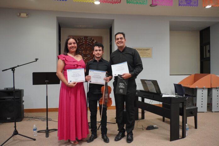 El Ensamble Cuore Vivace, artífice de este recital, está integrado por los estudiantes Iván Arturo Parra Carbajal al piano, Fabiola Vega Carbajal, soprano cuya talentosa voz intervino en tres de las melodías presentadas y el egresado de esta casa de estudios Óscar Luis Nevárez Castillo en el violín.