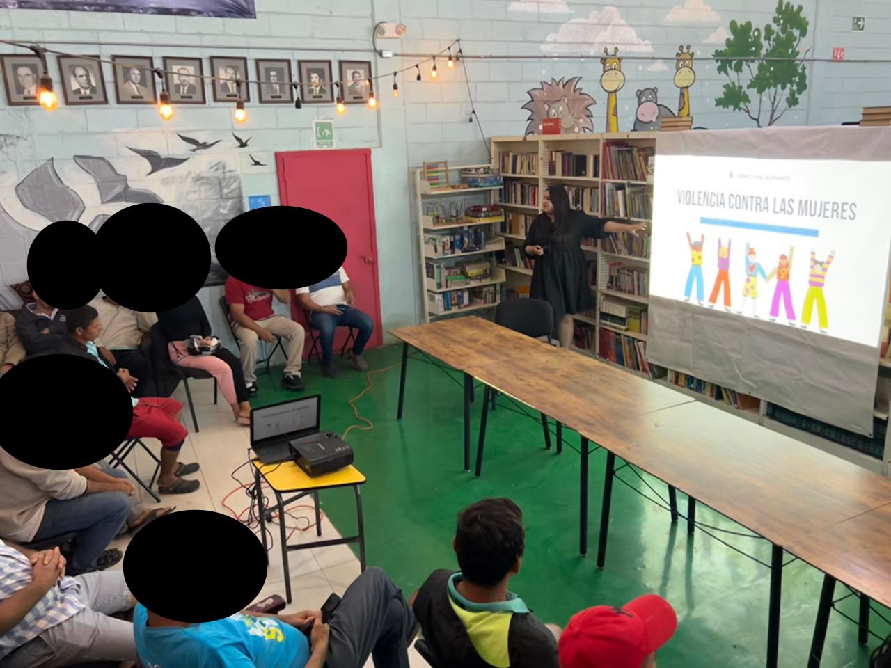 Personal de la Dirección de Derechos Humanos impartió el taller Violencia Contra las Mujeres, dirigido a los migrantes que están en el albergue Enrique “Kiki” Romero, ubicado en la colonia Azteca.