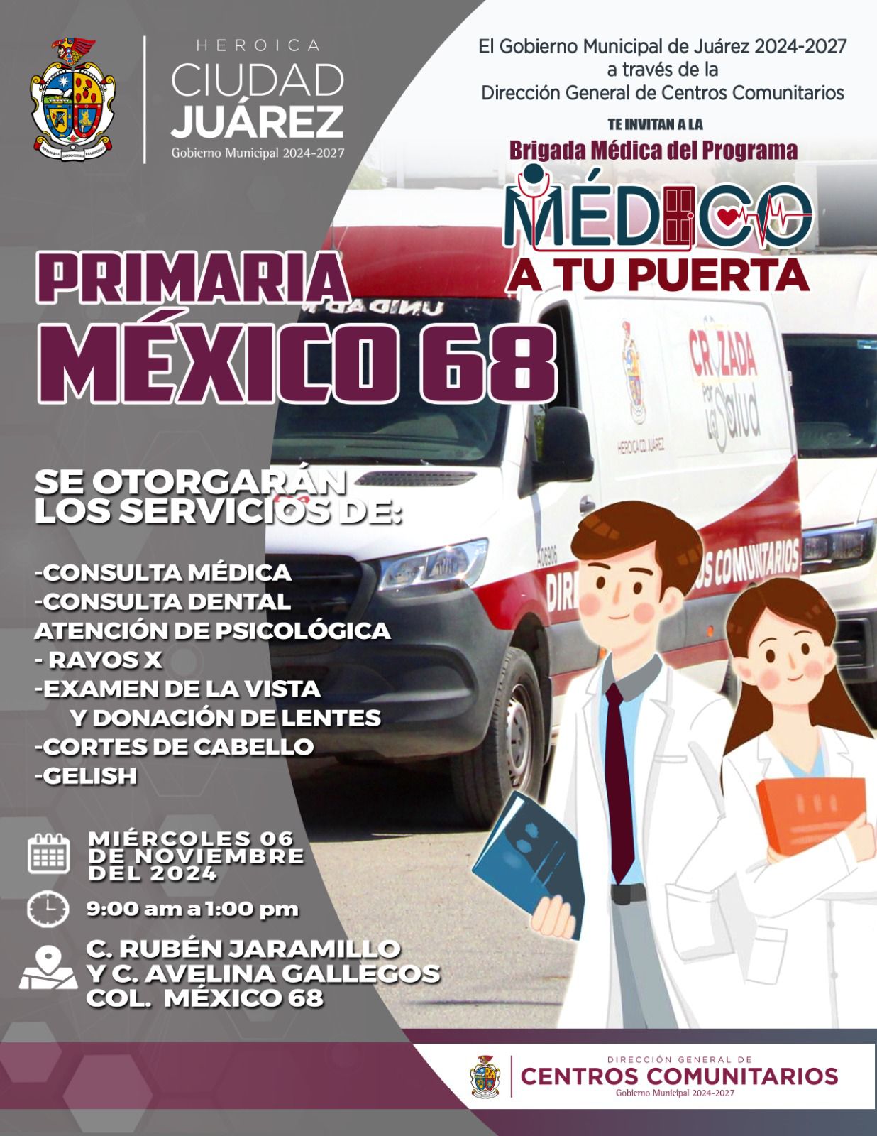 Informó que la primera jornada tendrá lugar mañana miércoles 6, de 9:00 de la mañana a la 1:00 de la tarde en la Escuela Primaria México 68, situada en la intersección de las calles Rubén Jaramillo y Avelina Gallegos en la colonia México 68.