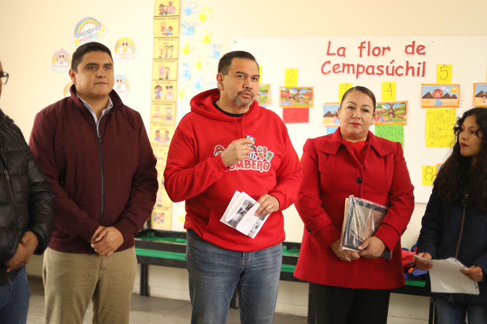 Dijo que también el Gobierno Municipal les dotó de mesas de trabajo, sillas y, para cuidar la salud de los infantes, también se les entregó chamarras.