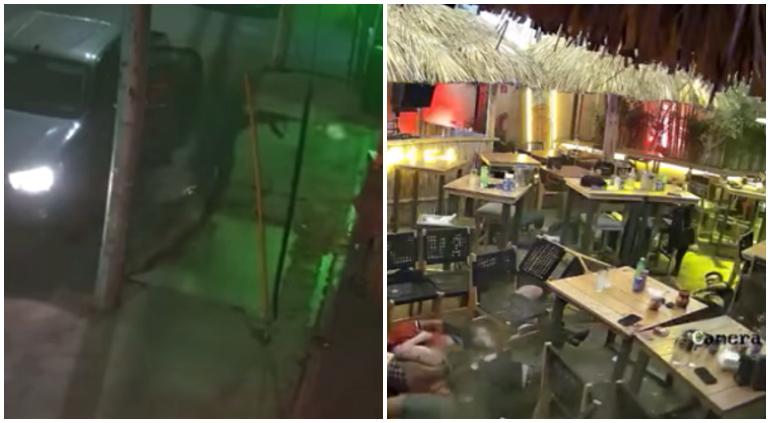 Las imágenes del exterior del establecimiento exponen cómo llegó una camioneta negra, de la cual descendieron varios hombres armados y en cuestión de segundos, mientras abrían fuego hacia el interior del bar, volvieron al vehículo para darse a la fuga.