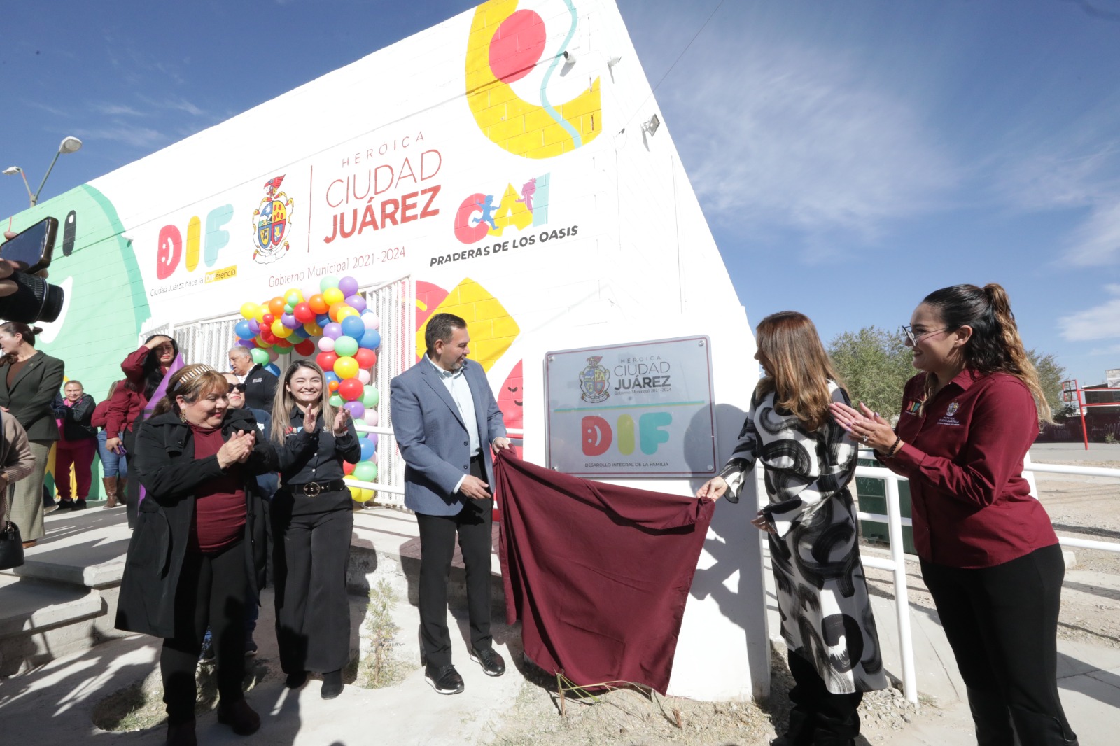 El Presidente Municipal, Cruz Pérez Cuéllar, inauguró el Centro de Atención Infantil (CAI) Pradera de los Oasis, espacio que apoya a madres trabajadoras, especialmente de la industria maquiladora.