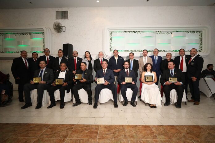 En el marco de la ceremonia, Díaz Mariñelarena entregó un reconocimiento especial al Presidente Municipal, Cruz Pérez Cuellar, por su apoyo al Salón de la Fama del Deportista Juarense.