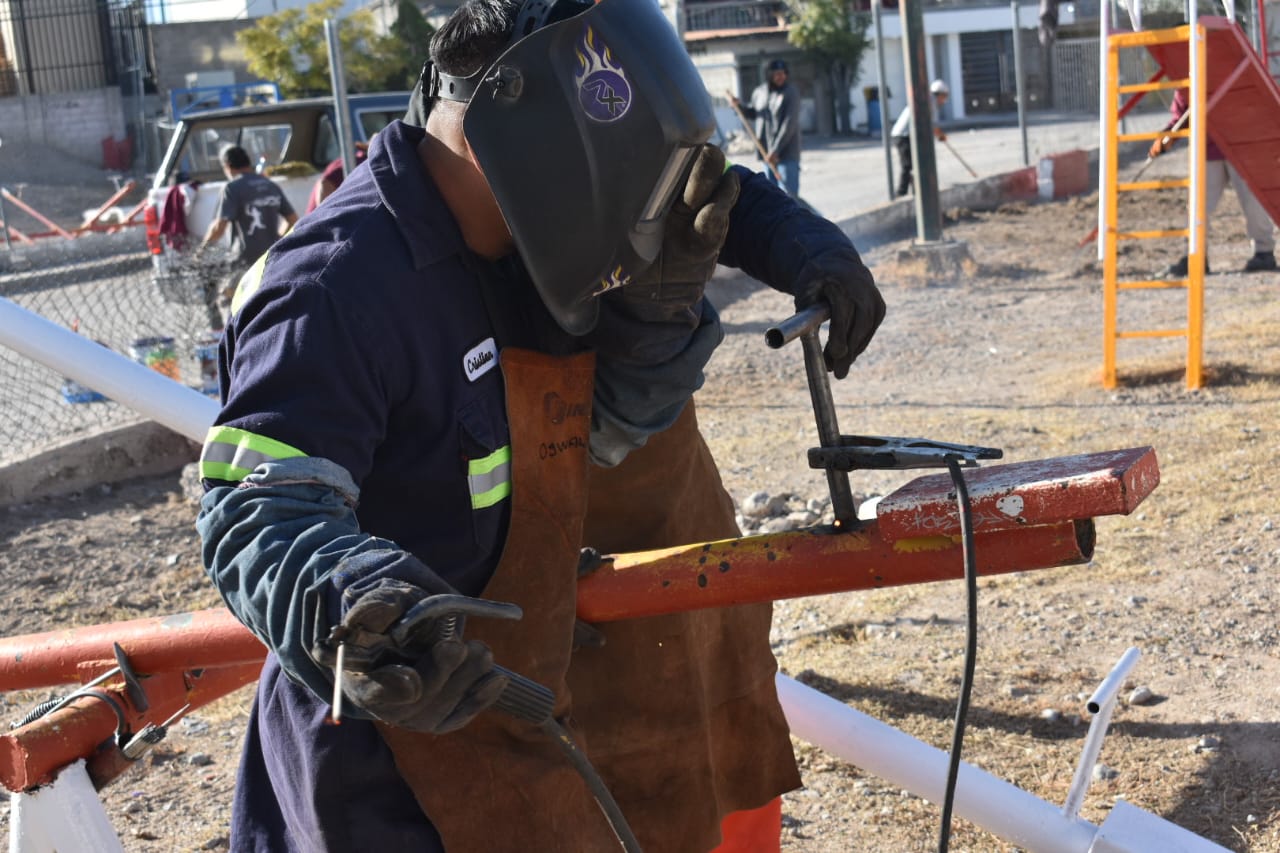 Personal de la Dirección de Parques y Jardines trabajó en la limpieza y mantenimiento de dos parques ubicados en la calle Presa del Centenario y Presa de Las Lajas en la colonia Independencia.
